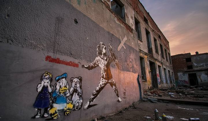 Це вже шостий мурал художника, який у своїх роботах піднімає тему загибелі дітей через війну.